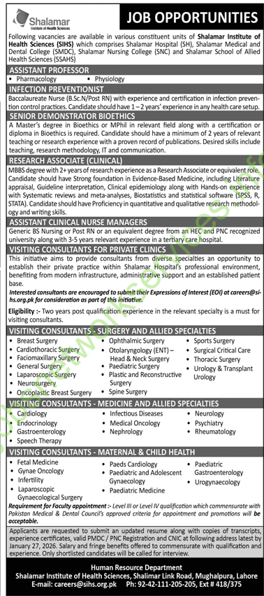 Shalamar Institute of Health Sciences SIHS Jobs 2026 at Lahore