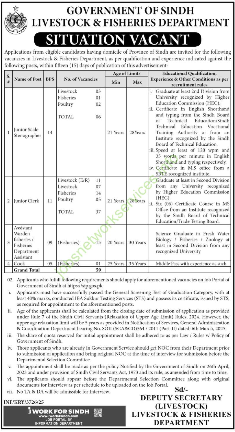 Sindh Livestock & Fisheries Department Jobs 2025 Latest