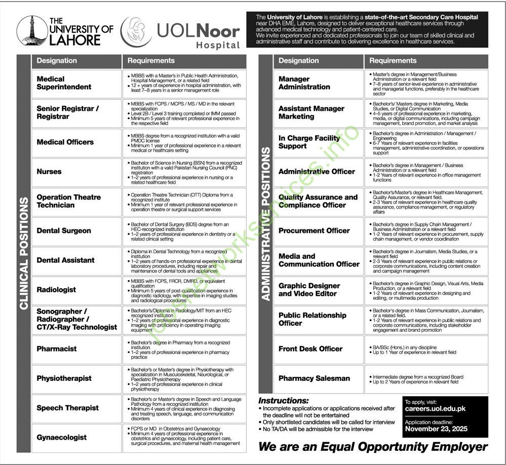 The University of Lahore UOL Jobs 2025 Latest UOL Noor Hospital Jobs