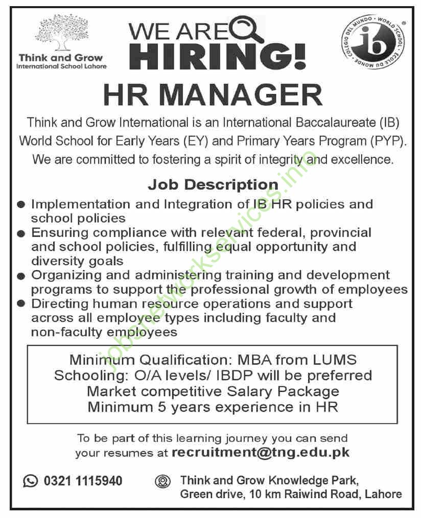 Think and Grow International School Lahore Jobs January 2025 Latest