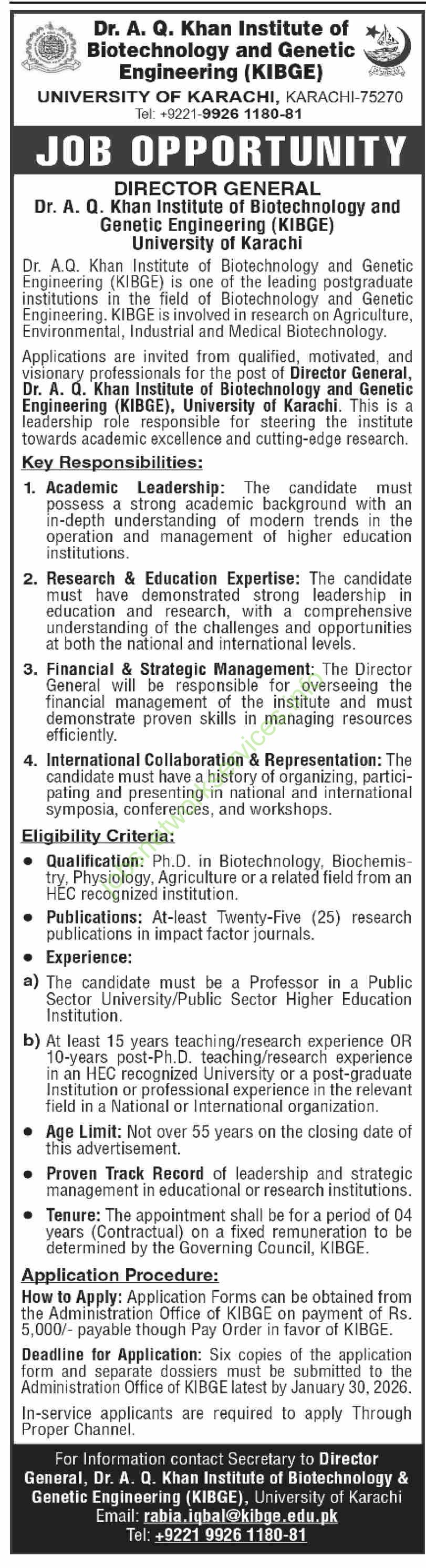 This is a high-profile role suited for an established academic professor with a strong research portfolio, leadership experience, and a vision to guide a premier biotechnology institute. Interested and eligible candidates should note the detailed application procedure and the impending deadline.