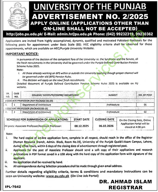 The advertisement clearly states two main positions:Associate Professor and Assistant Professor. The application process is strictly online,with hard copies required via registered post. Notable requirements include a USB with research publications for Associate Professor applicants and adherence to the new pension scheme rules.